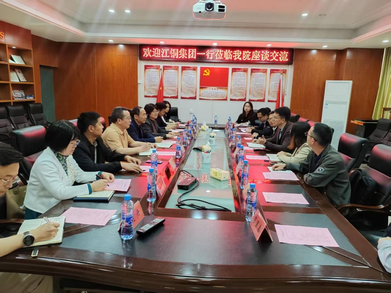 为深化校企合作,推动产教融合,2026年4月15日上午,江铜集团一行领导莅临我院,就科研合作、人才需求等方面开展座谈交流。我院党委书记戴超、院长谌烈、副院长王玉林及相关专业老师代表出席会议。