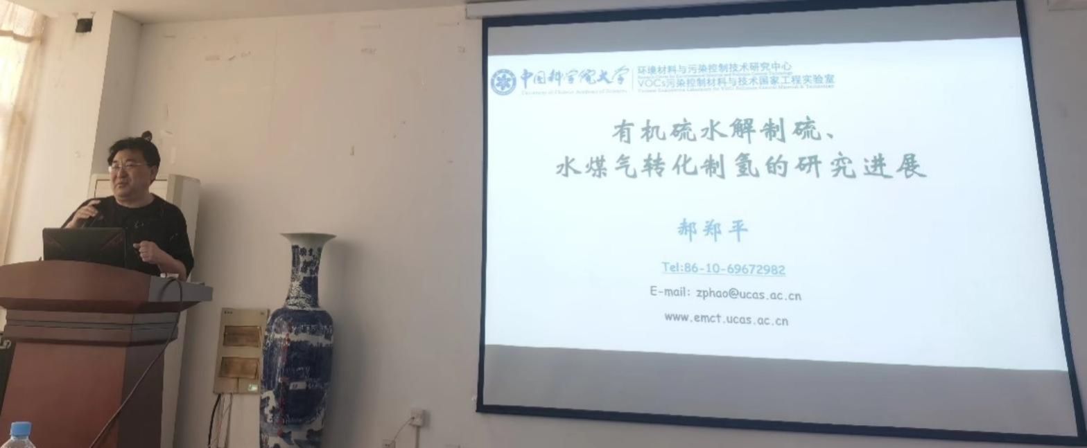 报告中,郝郑平教授对相关课题的研究进展进行了详细讲述,报告了不同程度氧缺陷钙钛矿的制备及其催化有机硫水解协同制硫构效关系,和不同制备方法合成CeO2锚定Pt单原子催化水煤气反应性能及机理。