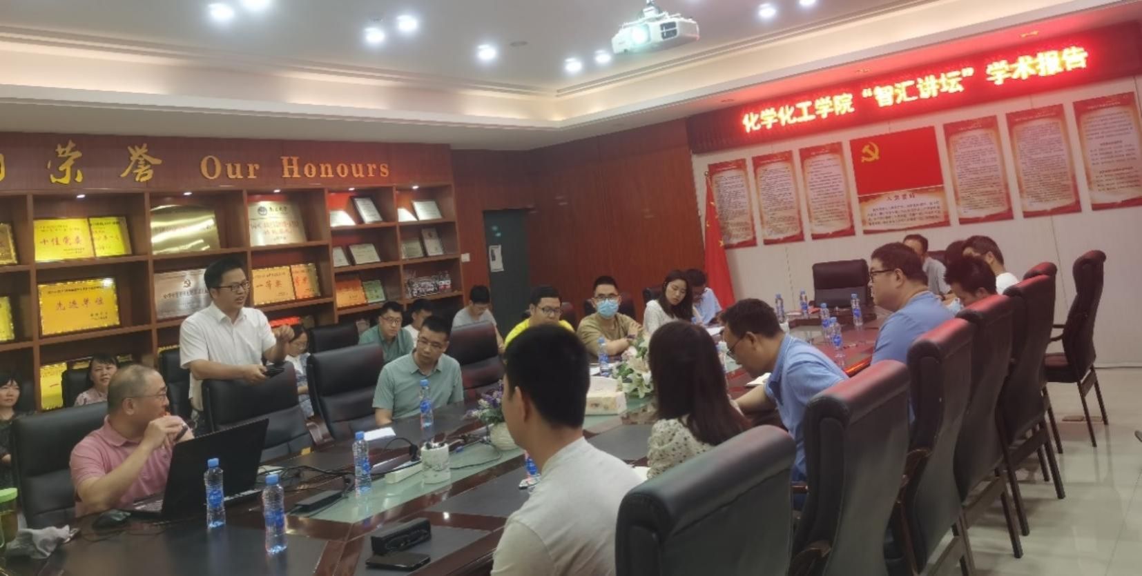 (化学化工学院,徐香兰、杨雨凤报道)为深入推进党建“双创”,充分发挥学院基层党组织在促进和服务教学、科研、人才培养等中心工作的积极作用,2023年5月19日下午15时,化学化工学院党委 “双带头人”支部书记工作室组织、样板支部教职工第二党支部承办了化学化工学院“智汇讲坛”学术报告暨“学先进、做先锋”(系列之十八)主题党日活动。本次活动由化学化工学院教授委员会主任王翔教授作了“浅谈国家自然科学基金申请”学术报告,“双带头人”支部书记李东平主持报告,学院青年教师及部分研究生50余人聆听了此次报告。