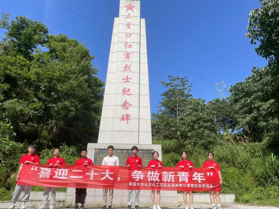 化学化工学院讯,张颖 江彤 闫泽慧报道)为迎接党的二十大胜利召开,我院赴宜春暑期社会实践队先后前往三星口红军烈士纪念碑、彬江镇横村工农红军战地医院旧址,缅怀革命先烈,探寻先烈足迹,学习红色历史。