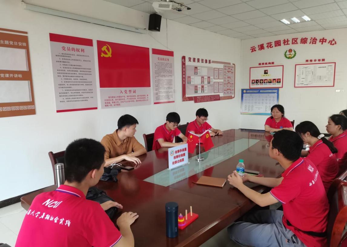 (化学学院张富豪 钱治平 沈香报道)为了鼓励大学生奉献社会,提高大学生的实践知识应用能力,更好地践行社会主义核心价值观,弘扬“五四精神”,正值中国共产党成100周年,南昌大学化学学院云溪暑期社会实践队于2021年7月5日来到云溪花园开展为期十天的暑期社会实践活动。