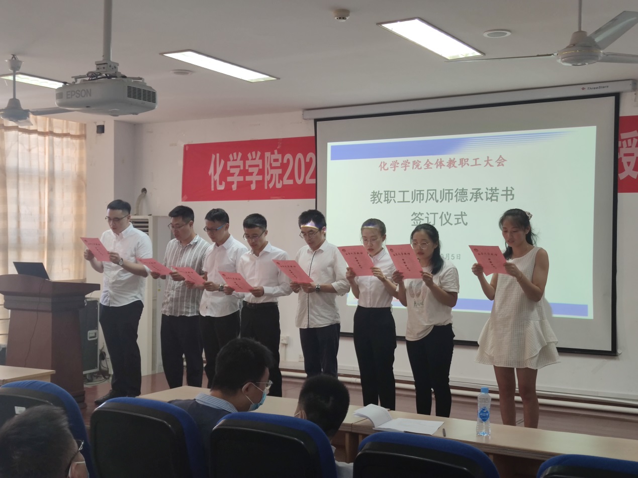 会上新进教师代表庄严承诺并宣读了南昌大学教师师德承诺书,全院教职工庄严的签订了《南昌大学教师师德承诺书》。会后,学院对全院教职工的承诺书进行了存档,警示每一位老师努力成为一名“四有”好老师。