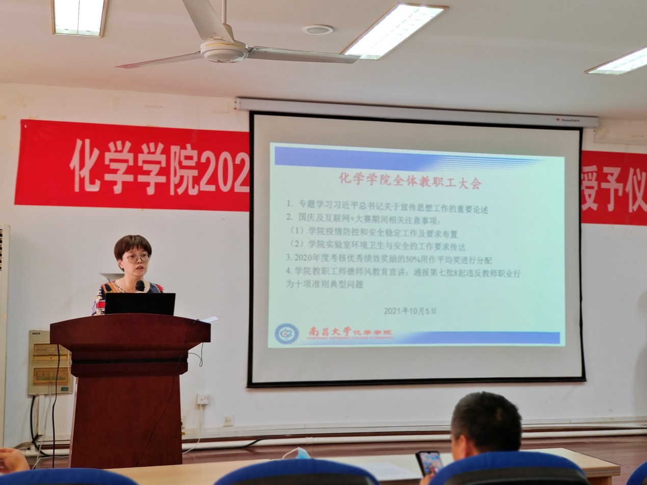 10月5日下午,我院在理生楼A302会议室召开2021年全体教职工大会暨“师德师风承诺书”签订仪式。院长蔡琥,党委副书记陈宁,副院长陈超、烈、廖伟强及全体教职工参加了会议,会议由副院长张子建主持。