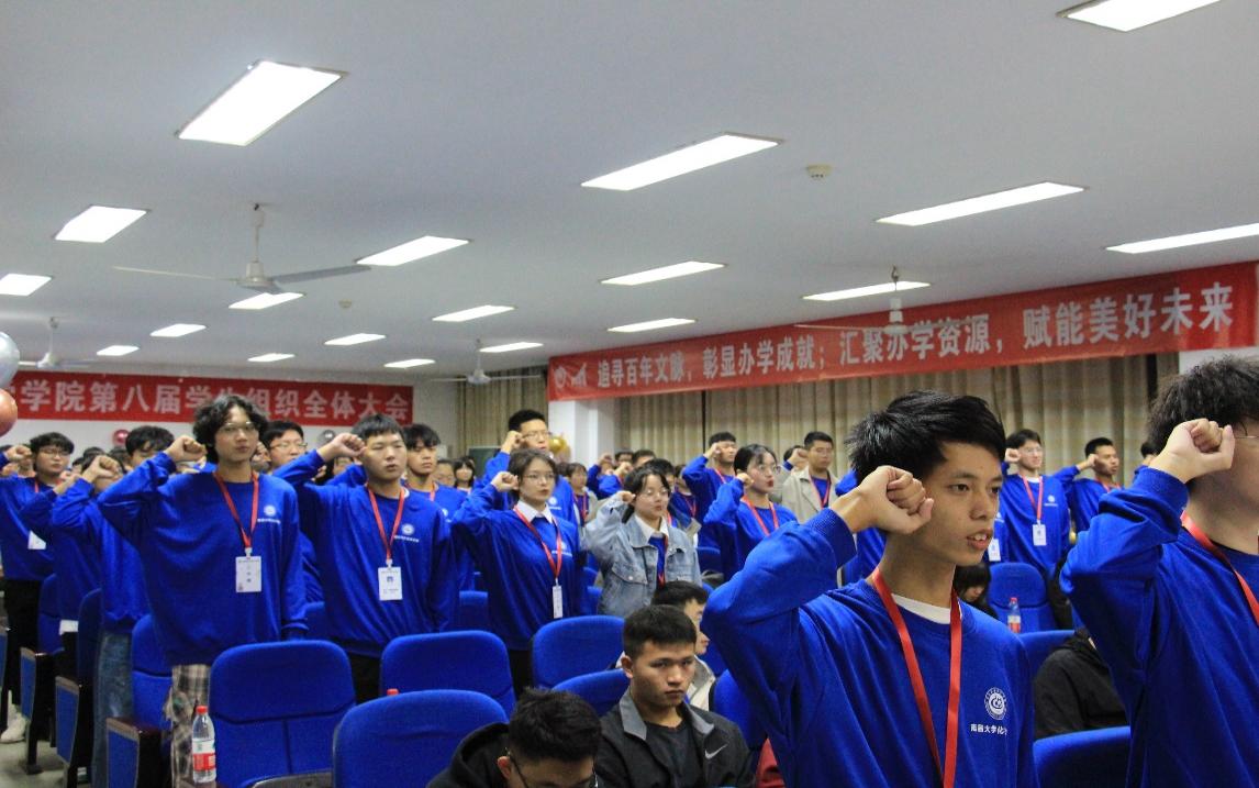 最后,领导、老师们主席团及各部门负责人颁发聘书并合影第八届团学组织全体成员庄严宣誓,以满腔热血来迎接未来的挑战全体与会成员合影留念