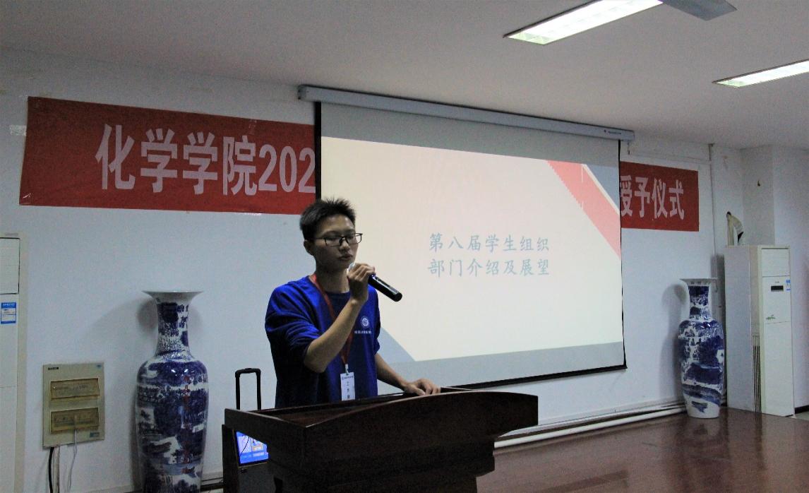 大会伊始,化学学院党委副书记陈宁致辞。陈宁对新一届团学组织成员的加入表示祝贺,也对上一届团学组织的辛勤付出表示感谢,并对第八届团学组织的成员提出了以下三点期望:一,明确自身定位,每一位团学组织的成员既是学生工作的组织者,更是为同学服务的志愿者;二,严于律己,全心全意为同学服务,团学组织的成员应从自身做起,坚决杜绝不良作风,端正工作态度;三,正确处理好学习和工作的关系,要学会合理安排时间,在保证学习的前提下做好工作。