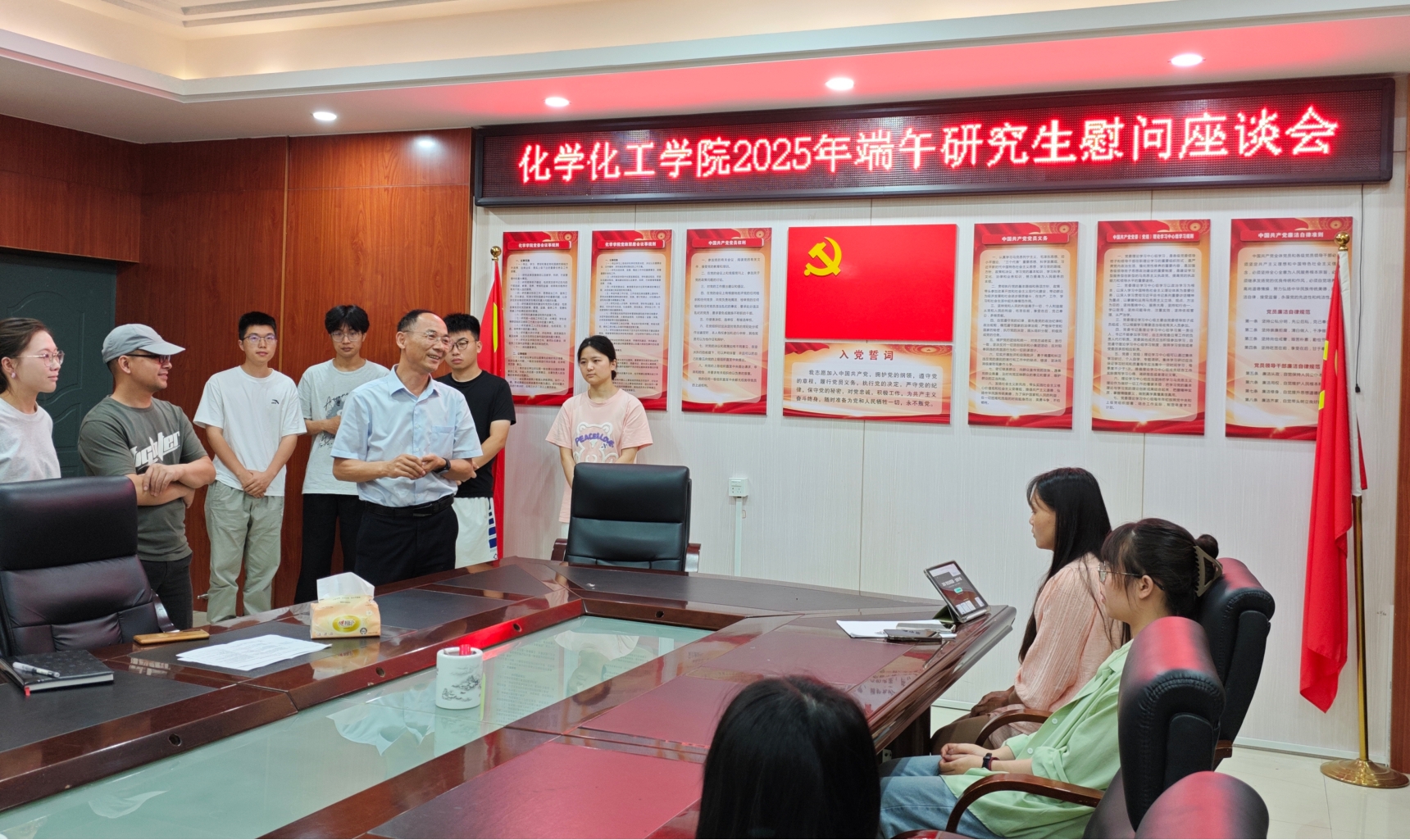 5月23日上午,化学化工学院在理生楼A315开展“学思践悟强信念,端午慰问暖人心”端午慰问活动。学院党委书记戴超、院党委委员陈金龙、研究生辅导员谢晨彬、王丽燕及30余名研究生代表参加活动。