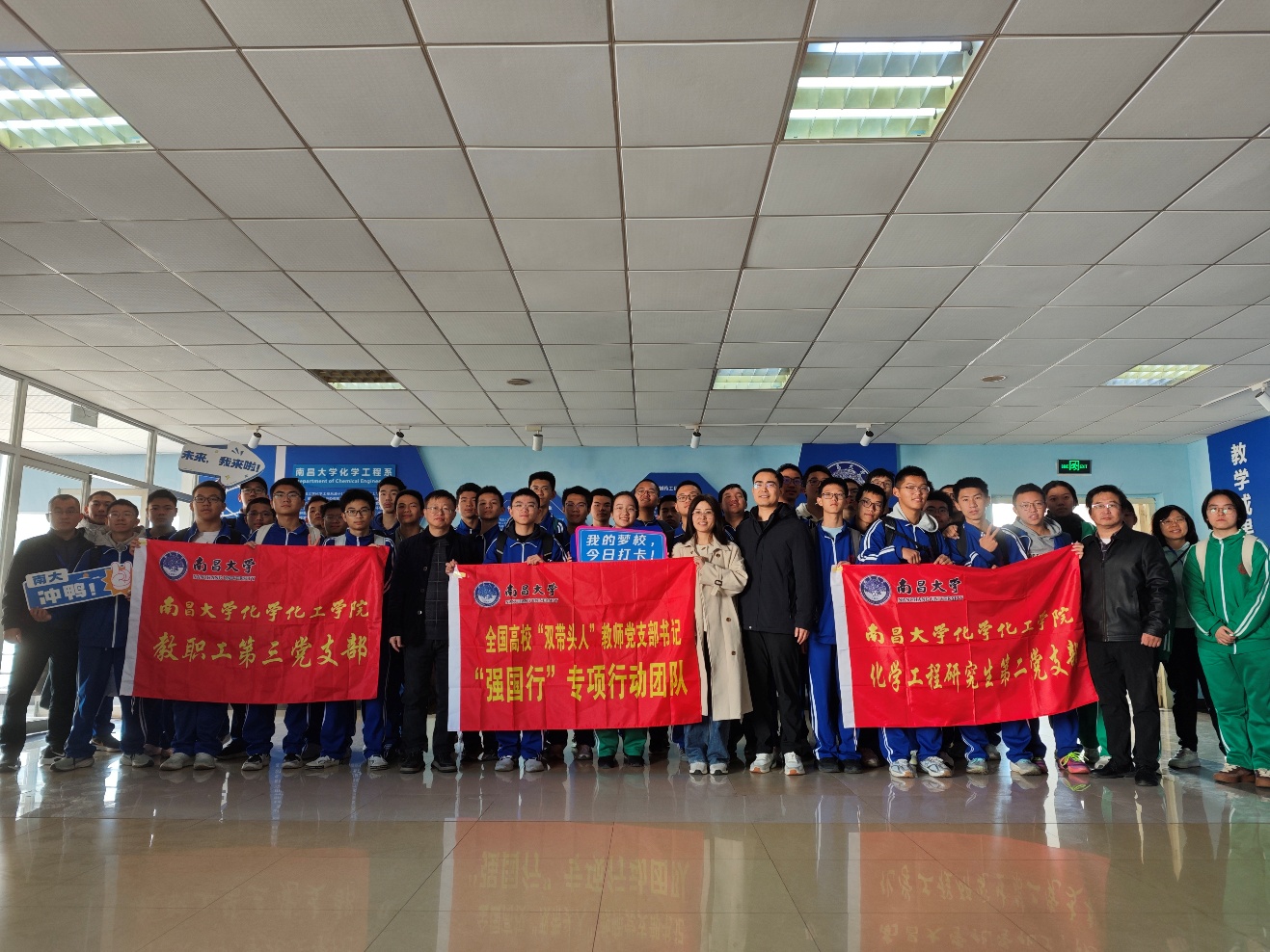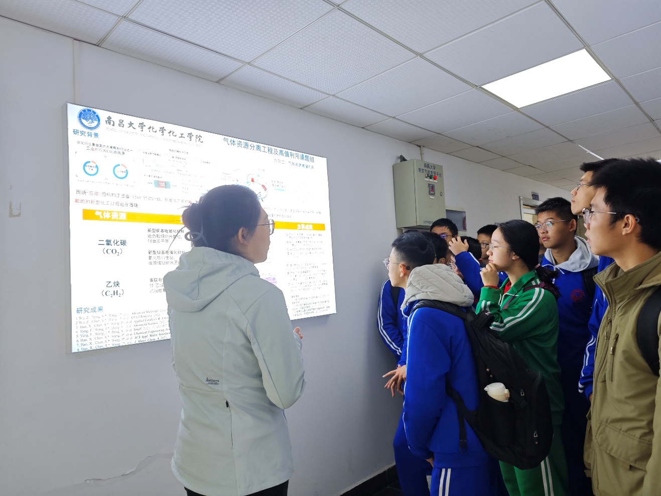 化学化工学院讯,周珍宇、陈世霞报道)11月28日上午,南昌大学化学化工学院的实验楼前格外热闹,来自江西师大附中高一年级的五十余名师生如约而至,开启了一场沉浸式化学科研研学之旅。此次活动由学院教工第三党支部与化工研究生第二党支部联合策划实施,是学院"强国行"专项行动的重要实践,通过搭建高校与中学的科研育人桥梁,将“双碳”战略理念融入青少年科学教育,为提升中学生科学素养注入活力。