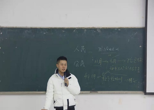 首先,吴成为同学们讲解了入党流程,并一同回顾了百年党史以宣讲党的十九届六中全会精神为主线对于如何成为一优秀党员,他从言行举止、思想素质两个方面进行解读,希望同学们要做到三思而后行,品学兼优,为人民服务,不能做精致的利己主义者。他还提到了中国共产党全国代表大会的召开时间与背景,并讲述了一些关于党的领导人带领全中国从站起来到富起来再到强起来的伟大历程。对于刚结束的国家公祭日,吴成也希望同学们铭记历史,吾辈当自强。