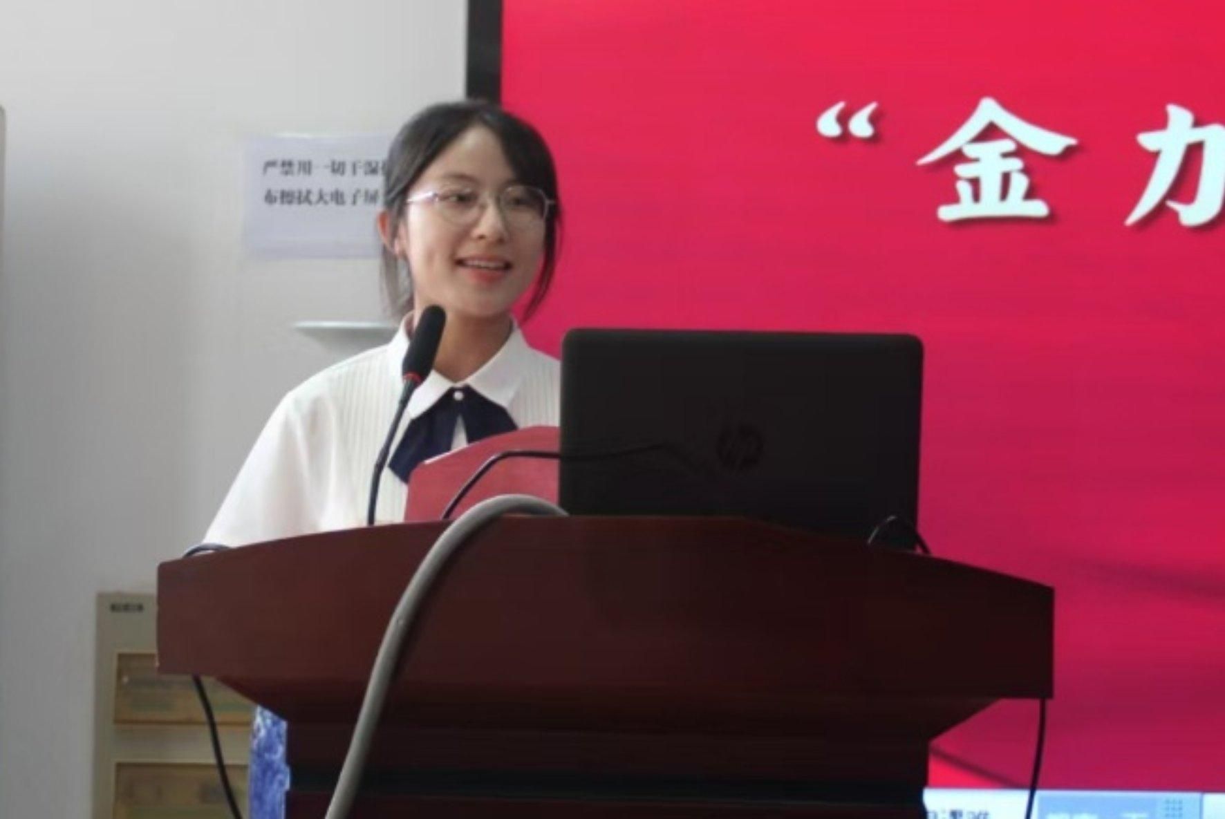 化学化工学院毛阳雪同学代表获奖学生发言。她向学校及江西金力永磁科技股份有限公司表达感谢,表示将心怀感恩,把个人理想与国家需求结合,将所学知识用于实践,“不忘初心,砥砺前行”,向着更高目标奋勇前进!