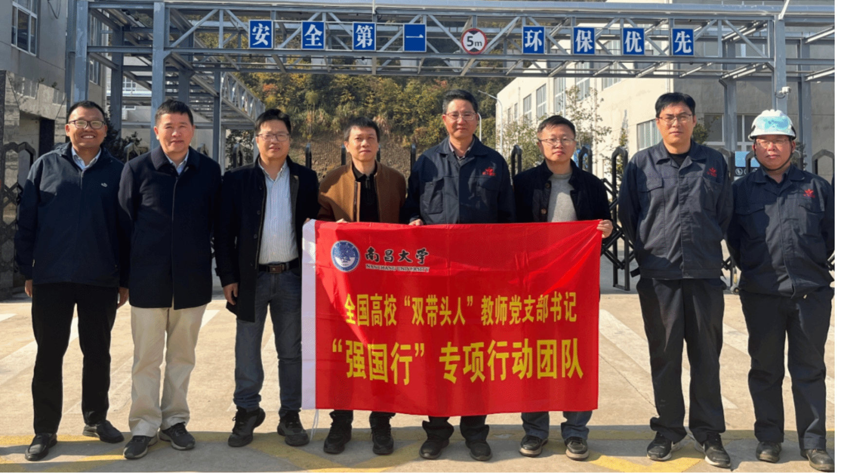 近日,为深入贯彻落实党的二十大精神,积极探索新时代高校党建与事业发展深度融合的有效路径,深化拓展校地企合作新格局,服务江西省“1269行动计划”,南昌大学化学化工学院党委副书记张勇、院党委委员“双带头人”教师党支部工作室负责人李东平,组织党员同志赴江西省德兴市开展“强国行”专项行动。通过党建引领,搭建高校、地方、企业三方联动的“红色桥梁”,探索人才培养、科技创新与区域产业升级同频共振的新路径。