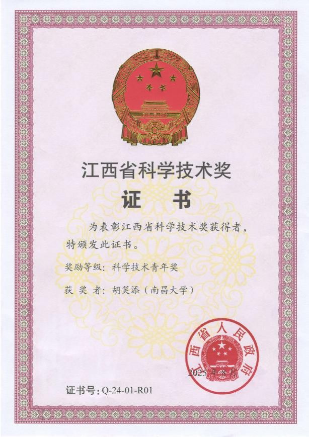 “荣誉是认可,更是鞭策。感谢学校与团队长期以来的支持,我将继续牢记‘双带头人’的使命,勇担青年科技工作者的责任,扎根科研前沿,勇于攻坚克难,推动更多科技成果转化落地,切实服务国家战略需求和江西高质量发展。”胡笑添这样说道。