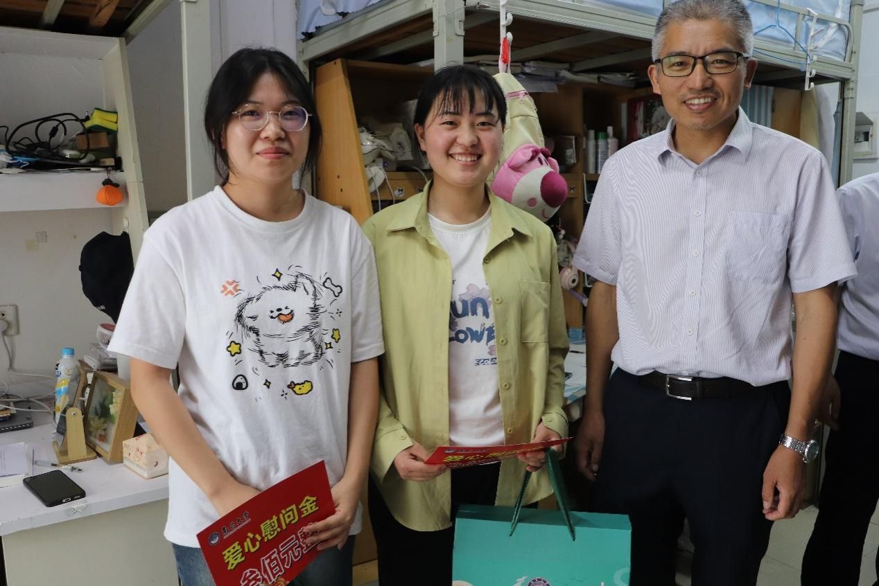慰问接近尾声时,副校长聂少平将精心准备的端午慰问礼品送到同学手中,并与大家亲切合影留念。同学们接过礼品,脸上洋溢着幸福的笑容,现场气氛温馨融洽。