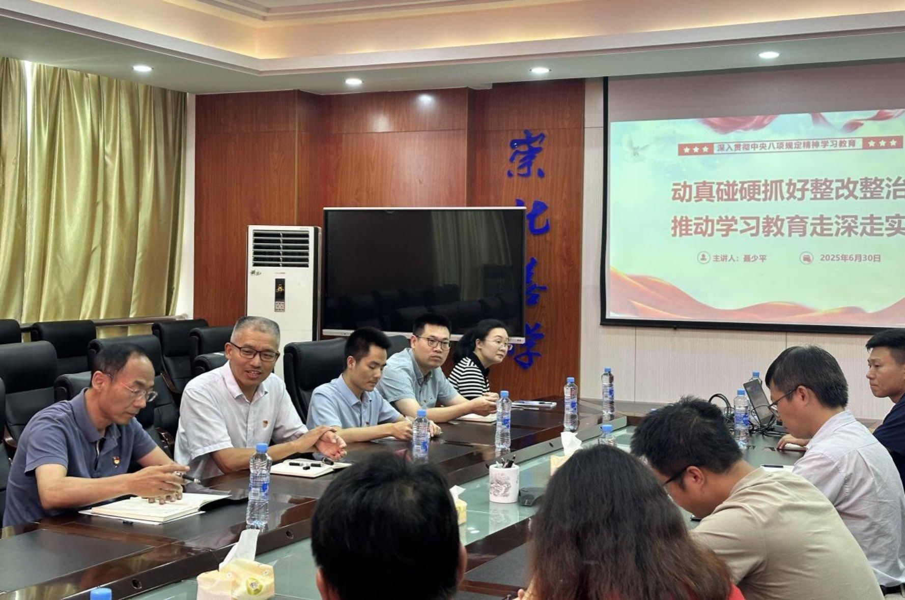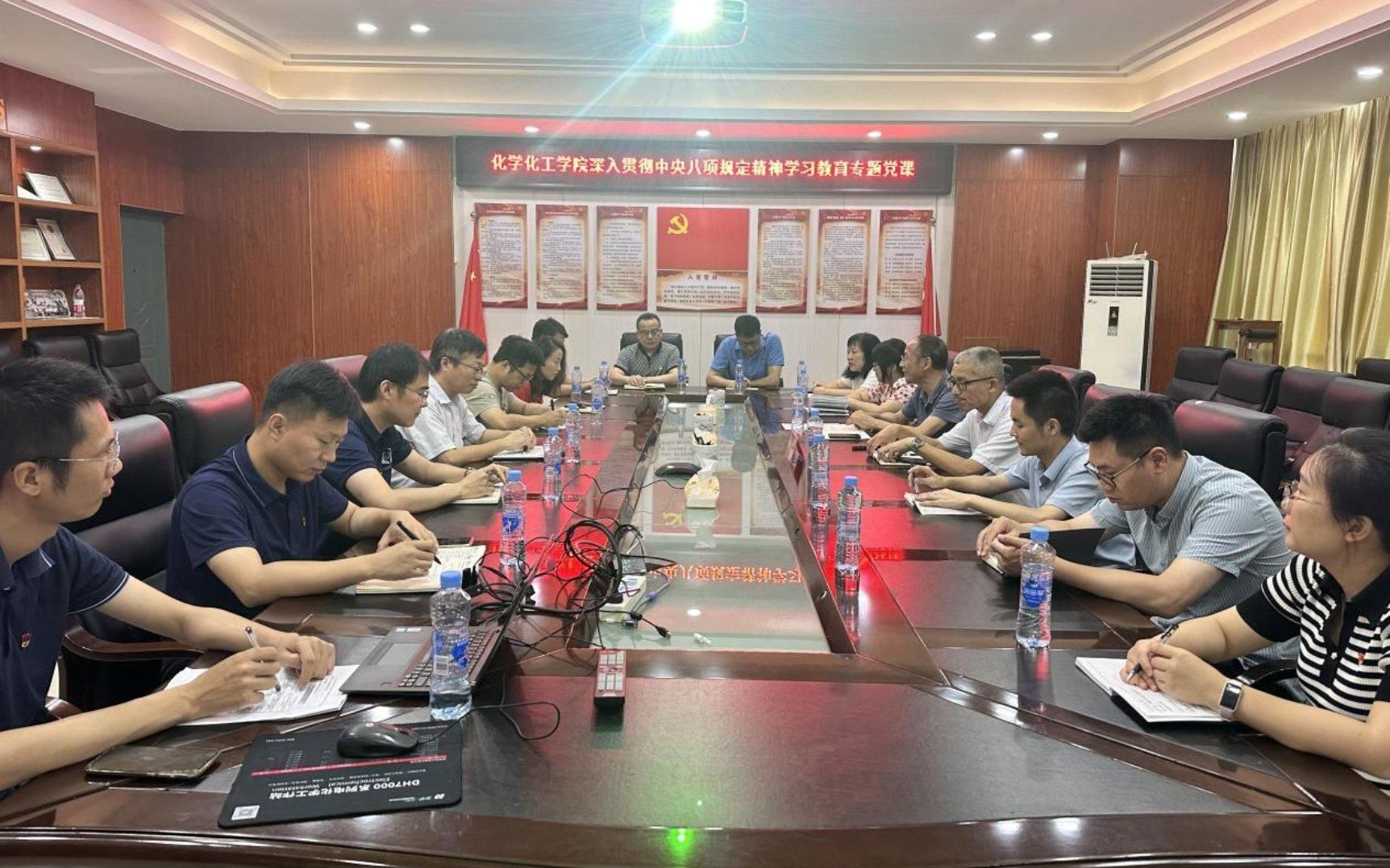 2025年6月30日下午,南昌大学党委常委、副校长聂少平同志在理科生命楼A315与化学化工学院党委班子成员和各党支部书记座谈交流,指导推进深入贯彻中央八项规定精神学习教育工作并讲授题为《动真碰硬抓好整治整改,推动学习教育走深走实》的专题党课。
