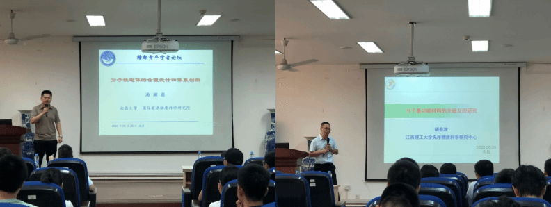 汤渊源教授以《分子铁电体的合理设计和创新体系》为主题,深入浅出地介绍了分子铁电体设计工作中的合理性以及体系的创新,结合实验成果介绍了当前分子铁电体的总体形式,详细论述了进一步开展分子铁电体的开发以及体系创新的前瞻性思考;接着,胡兆波教授用生动有趣的语言对分子基功能材料进行了讲述,《分子基功能材料的光磁互控研究》报告指出了分子基功能材料在光磁互控方面研究的优势,为分子基功能材料发展开发了新的思路。