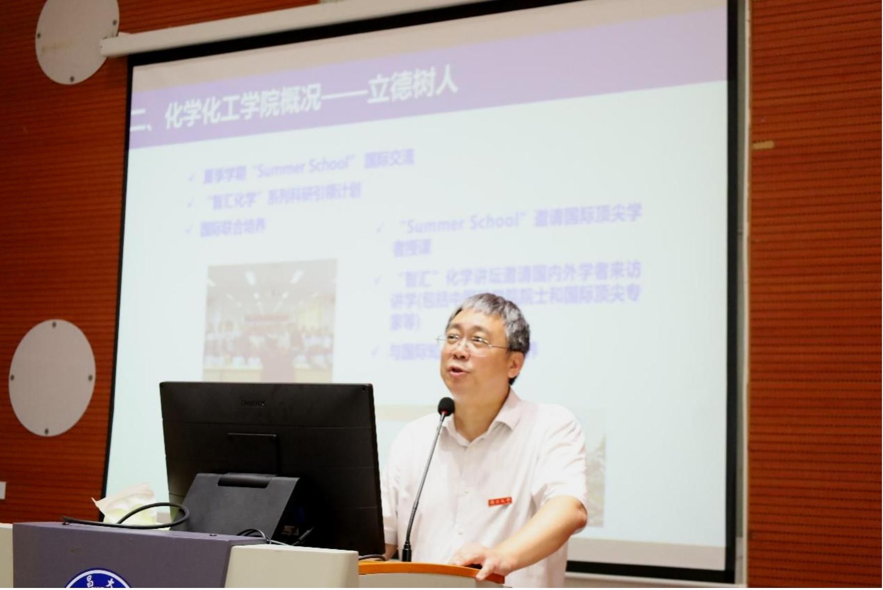 蔡琥院长以“学在昌大,赢在未来——美好生活,化学创造”为主题开篇,系统梳理学院发展脉络与综合实力。他介绍,学院底蕴深厚,师资队伍汇聚院士等高层次人才,化学、化工两大核心学科优势突出;在专业建设上成果丰硕,学生升学深造率与就业质量持续稳居前列,同时学院积极搭建国际交流平台,为学子拓展全球视野创造条件。蔡院长的讲解条理清晰、内涵丰富,为新生全景式展现了学院的办学特色与发展前景,让大家对未来四年的学习生活充满期待。