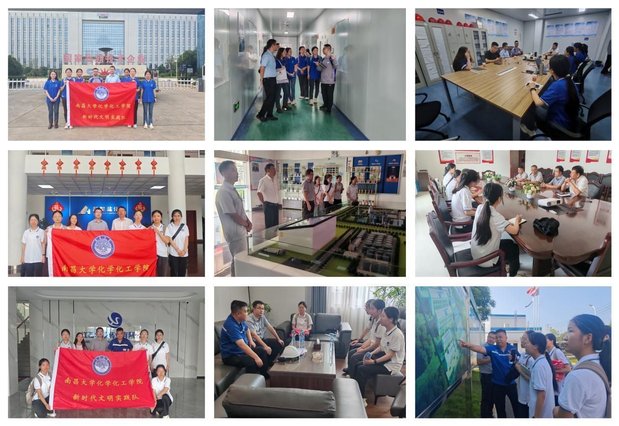 (化学化工学院讯,谢冬红报道)为探索学院人才培养、科研合作与工业园区、企业需求的契合点,促进产学研深度融合,为学生提供了解行业前沿、产业生态和职业发展的机会,并让学生深刻理解专业报国和红色基因的时代传承,7月17—20日,南昌大学化学化工学院教师徐文涛、辅导员谢冬红率“化雨润园探产链,赤心妙手绘新篇”新时代文明实践队赴江西省樟树市开展暑期实践,围绕“访企业、悟知识、铸红心”,完成一次知识探索与精神成长深度融合的“双向奔赴”。