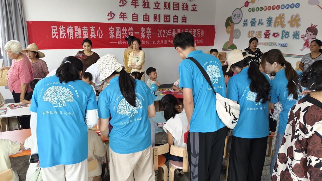 7月7日,实践队联合德兴市妇联、德兴市香屯街道在兰村畲族村一老一小幸福院开展“民族情融童真心 家园共筑一家亲”2025年暑假儿童关爱活动。活动现场就像一个欢乐的海洋,充满了孩子们的欢声笑语。
