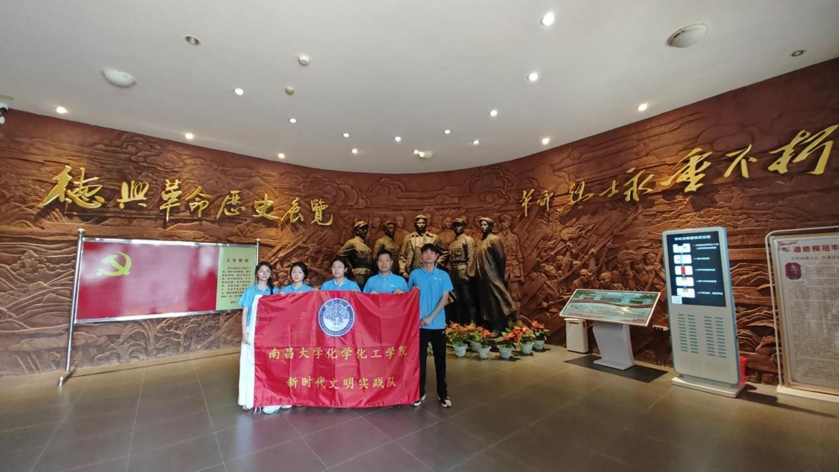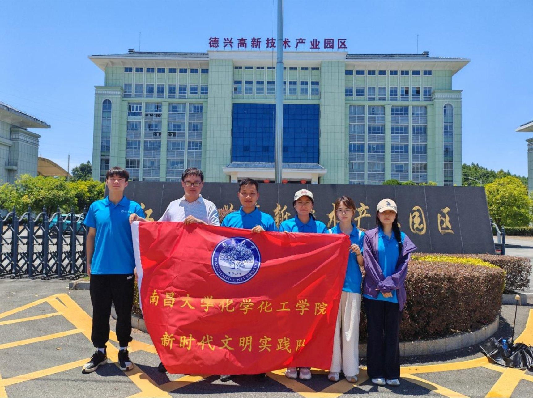 (化学化工学院讯,张齐琳报道)为深入学习贯彻习近平新时代中国特色社会主义思想和党的二十大精神,贯彻落实习近平总书记考察江西重要讲话精神,2025年7月5日至10日,南昌大学化学化工学院“化雨润园探产链,赤心妙手绘新篇”新时代文明实践队赴江西省德兴市,以“党建红、暖心橙、产业金、生态绿、志愿青、安全蓝、化工紫”为绚丽色彩,精心绘制了为期一周的社会实践画卷,引领青年学子在社会的广阔天地中受教育、长才干、作贡献。