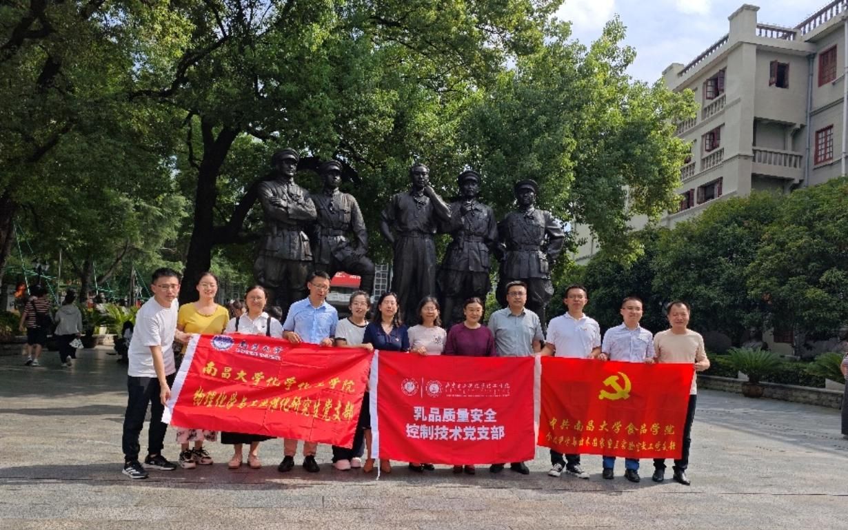 为持续深化党史学习教育成效,推动红色基因与学科建设深度融合,同时积极响应“双带头人”教师党支部书记“强国行”专项行动的要求,以红色教育为纽带深化跨单位党建联建工作,2025年9月12日,南昌大学化学化工学院物理化学与工业催化研究生党支部携手内蒙古大学乳品质量安全控制技术党支部、南昌大学食品科学与资源挖掘全国重点实验室教工党支部,共同开展“溯源红色初心,凝聚奋进力量”主题参观活动,赴南昌八一起义纪念馆接受革命精神洗礼。