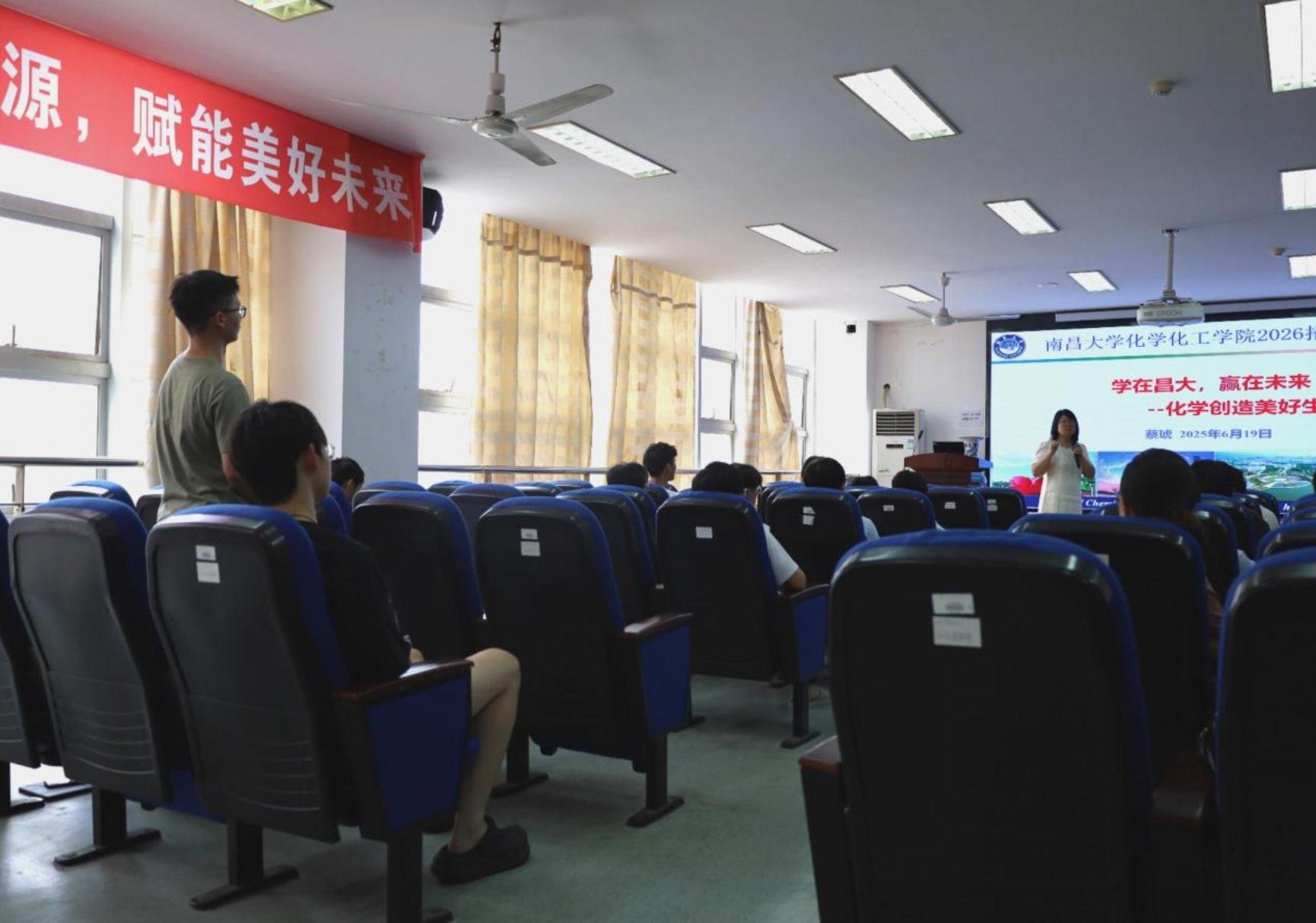 2025年6月19日上午,南昌大学化学化工学院2026届研究生招生宣讲会在南昌大学前湖校区理生楼A302-1会议室隆重召开。学院领导、教师代表以及众多本科生齐聚一堂,本次宣讲会由谌烈副院长主持,共同开启这场意义非凡的招生宣讲之旅。