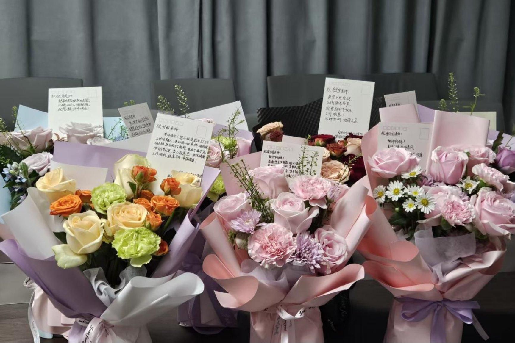 线上氛围热烈,线下活动同样温情涌动。9月10日下午4:00,阳光正好,化学化工学院团学组织主席团全体成员手捧精心挑选的花束,穿梭于各个办公室,为老师们送上节日的祝福。每一束鲜花都承载着学生们对老师的深深敬意和感激之情,老师们接过鲜花,脸上洋溢着幸福的笑容,温馨与感动的气息在空气中静静流淌。