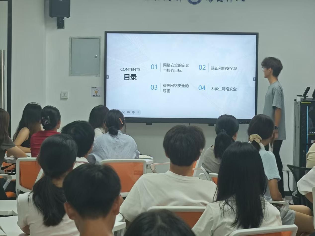 活动伊始,讲解人以近期高校校园内真实发生的网络安全案例为 “活教材”,迅速抓住在场团员的注意力。通过精心制作的 PPT 展示、生动有趣的短视频播放等形式,深入浅出地讲解了网络诈骗、个人信息泄露、恶意软件攻击等常见风险。从“刷单返利”“虚假中奖”等常见诈骗手段的精准识别,到社交平台个人隐私保护的小技巧,再到公共 Wi-Fi 使用时需要注意的安全事项,内容紧密结合大学生日常网络生活实际,让团员们深刻意识到,网络安全隐患并非远在天边,而是潜藏在每一次点击、每一次信息填写之中,切实打破了“网络诈骗离我很远”的认知误区。