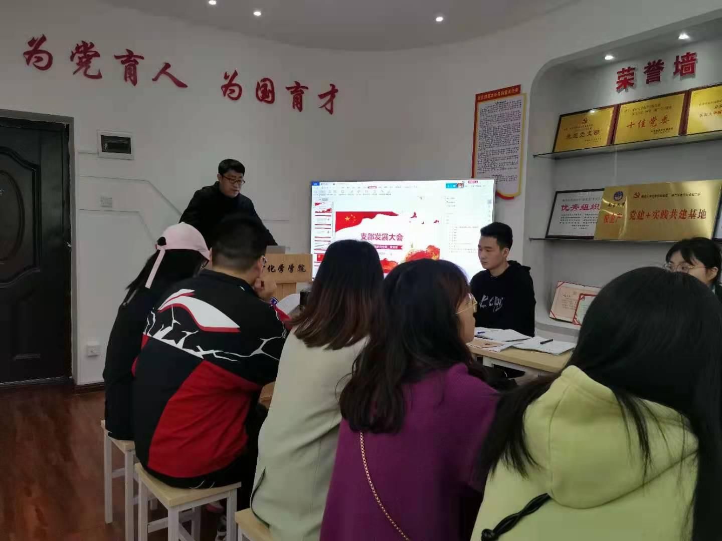 会议开始,党支部书记熊威老师对原研究生第四党支部的王梦、黄雪琴、汤树雨等九位无机专业的同志转入我支部表示欢迎。支部全体与会党员认真听取了四名入党积极分子基本情况的介绍及其入党愿望的表达,党支部书记熊威老师采取现场发问的形式,对四名入党积极分子进行党史学习教育,之后,党员同志们充分酝酿讨论,采取无记名投票的方式表决通过了黎帆、孙志远、余璇、郑琼青四名同志发展为中共预备党员的请求。随后黎帆等四位同志在支部第一副书记张赟芳同志的带领下面对党旗庄严宣誓。会议选举王梦同志和张赟芳同志分别担任前湖和青山湖党小组组长。