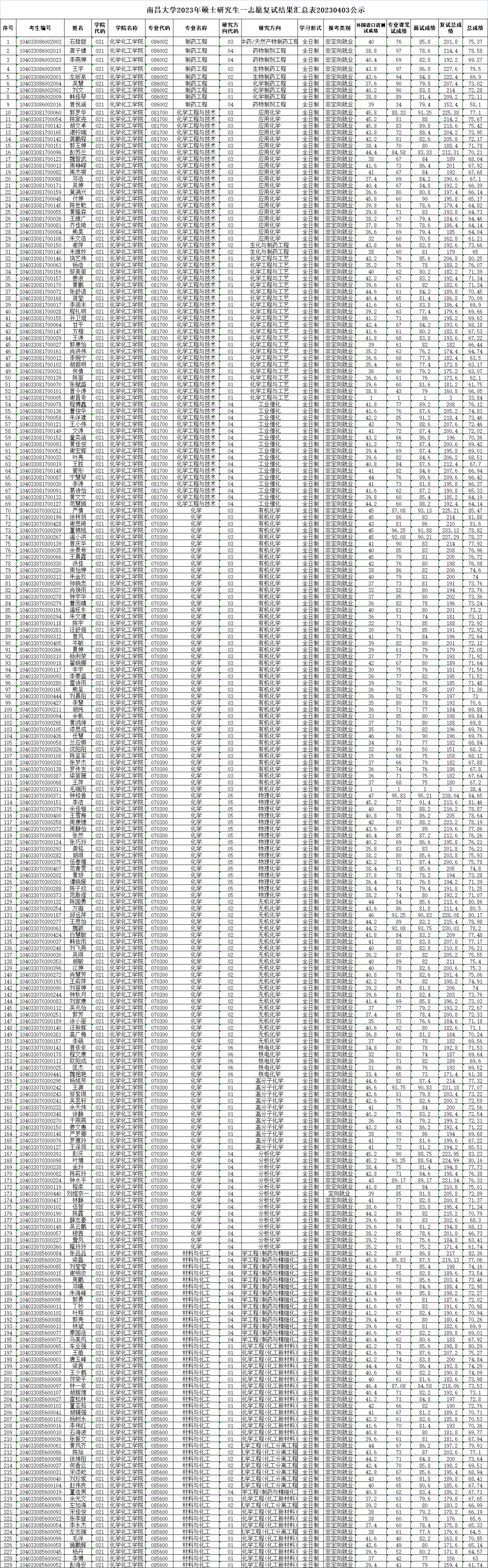 南昌大学2023年硕士研究生一志愿复试结果公示