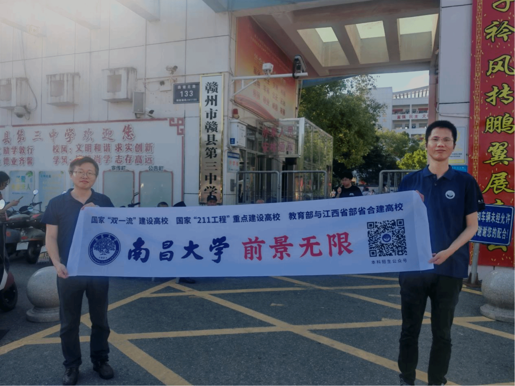 (化学化工学院讯,谢冬红报道)盛夏六月,骄阳似火,正是逐梦启航时!根据学校统一部署,为更好助力广大考生科学填报志愿、深入了解我校办学特色与人才培育优势。6月24—6月30日,我院招生宣传工作组兵分多路,奔赴省内外多所中学,用脚步丈量责任,以真情传递初心,向广大2025届高考生及其家长推介稳步发展中的南昌大学。
