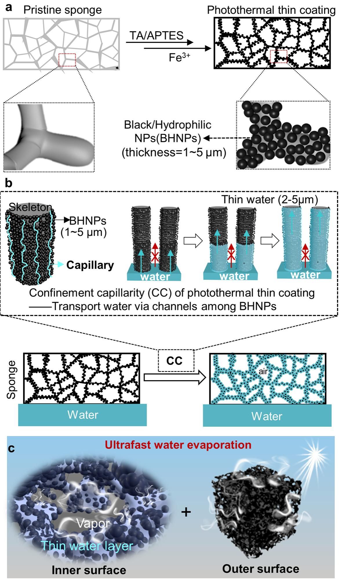 (11)Advanced Functional Materials , 2021, 2011114 ; 基于TA-APTES涂层的系列工作之一,为高效太阳能海水淡化蒸发器的设计提供了一个新思路——限域毛细作用,并采用高分辨Micro-CT精确测定了水层厚度。