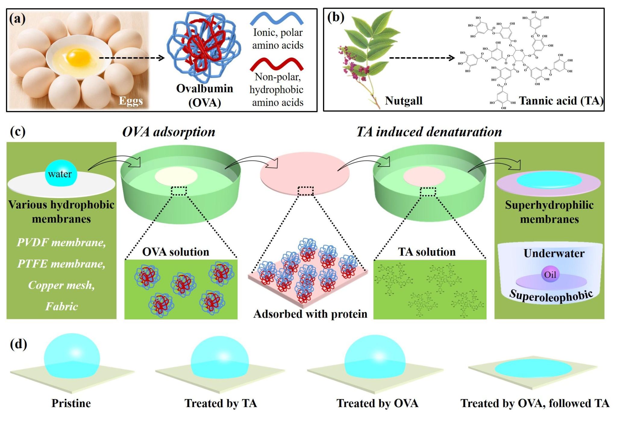 (9)Journal of Materials Chemistry A, 2018, 6, 13959 ;受皮革鞣制和疏水膜表面易吸附蛋白的启发,开发了基于单宁酸(TA)和蛋白的膜表面超亲水改性策略。