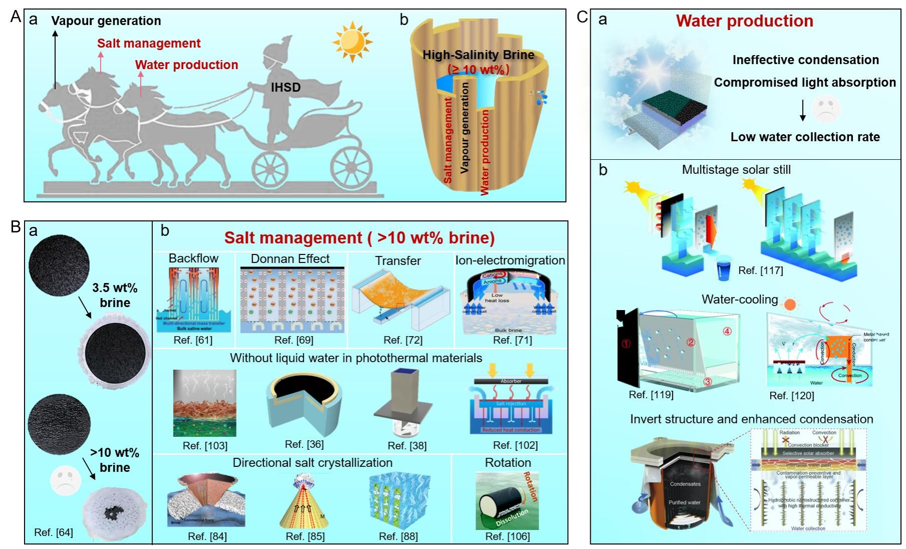 5. Interfacial-heating solar desalination of high-salinity brine: Recent progress on salt management and water production,Chemical Engineering Journal, 2023, 470, 144332. 详细总结讨论了太阳能界面光热水蒸发技术处理高浓度盐水的进展及挑战。