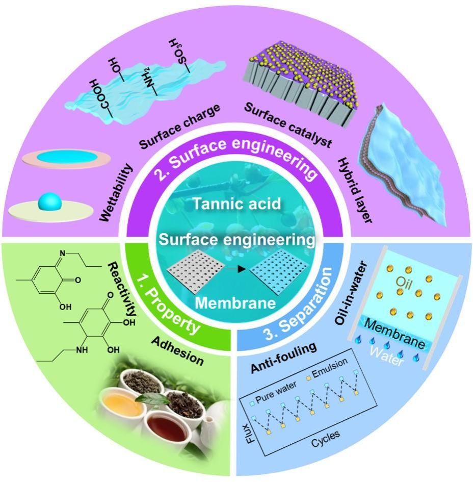 3. Tannic acid-based functional coating: Surface engineering of membranes for oil-in-water emulsion separation, Chemical Communications, 2022, DOI: 10.1039/D2CC05102H (详细介绍了单宁酸(TA)及其功能涂层在油水分离膜改性中的应用)