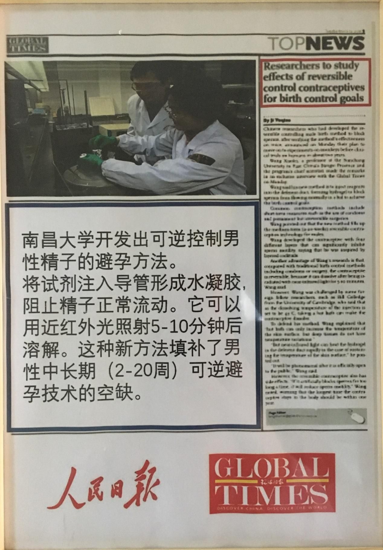 图24 2019年,人民日报环球时报专题报道课题组研发的光照男性避孕技术