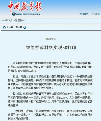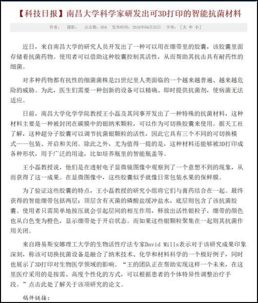 31. Fanrong Ai, Tingwu Liu, Yu Liu, Kang Yang, Yishen Liu, Wenyan Wang, Fushan Yuan, Lina Dong, Hongbo Xin* and Xiaolei Wang*. A 3D printed wound cooling system incorporated with injectable, adsorbable, swellable and broad spectrum antibacterial scaffolds for rapid hematischesis processing, Journal of Materials Chemistry B, 2018, 6, 5940-5948. (影响因子5.047,二区)
