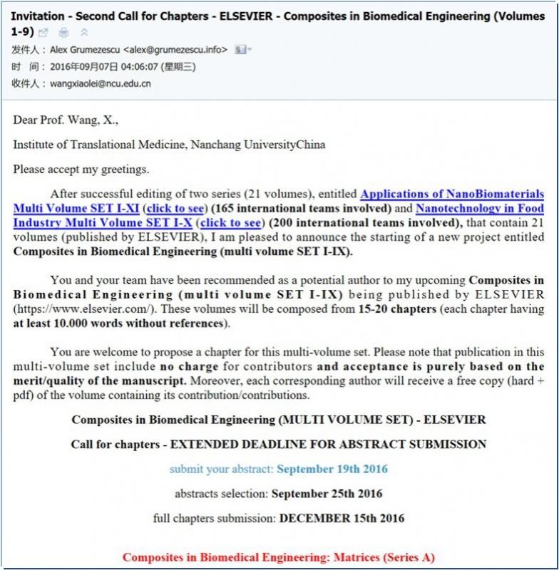 图9 国际第二大出版社 Elsevier对本课题的约稿邀请函
