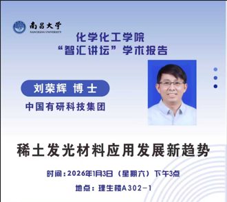 报告题目:稀土发光材料应用发展新趋势报告人:刘荣辉 博士(中国有研科技集团)时间:2026年1月3日(星期六)下午3点地点:理生楼A302-1报告人简介: 刘荣辉,男,1981年出生,正高级工程师,博士生导师。从事高端稀土发光材料及其先进制备技术开发,研制了系列高性能白光LED照明与显示荧光粉并产业化,在近红外荧光粉的材料设计、制备技术和应用探索方面取得重要突破。目前担任中国有研科技集团有限公司科发部副总理、稀土国家工程研究中心副主任。...