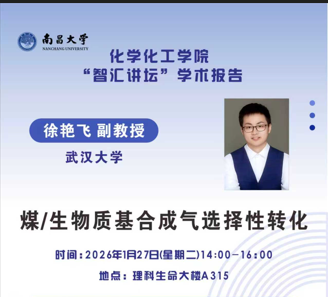 报告题目:煤/生物质基合成气选择性转化报 告 人: 徐艳飞 副教授(武汉大学)时间:2026年1月27日(星期二)14:00-16:00地点:理科生命大楼A315报告人简介: 徐艳飞,现任武汉大学动力与机械学院副教授。从事科研工作以来,长期专注于煤/生物质基合成气转化领域的研究,取得了两项关键突破:一是提出疏水表面调控水煤气变换副反应的新策略,将产物中 CO₂含量从超过40%降至15%以下;二是发展双活性位耦合调控产物分布的转化途径,实现了α...