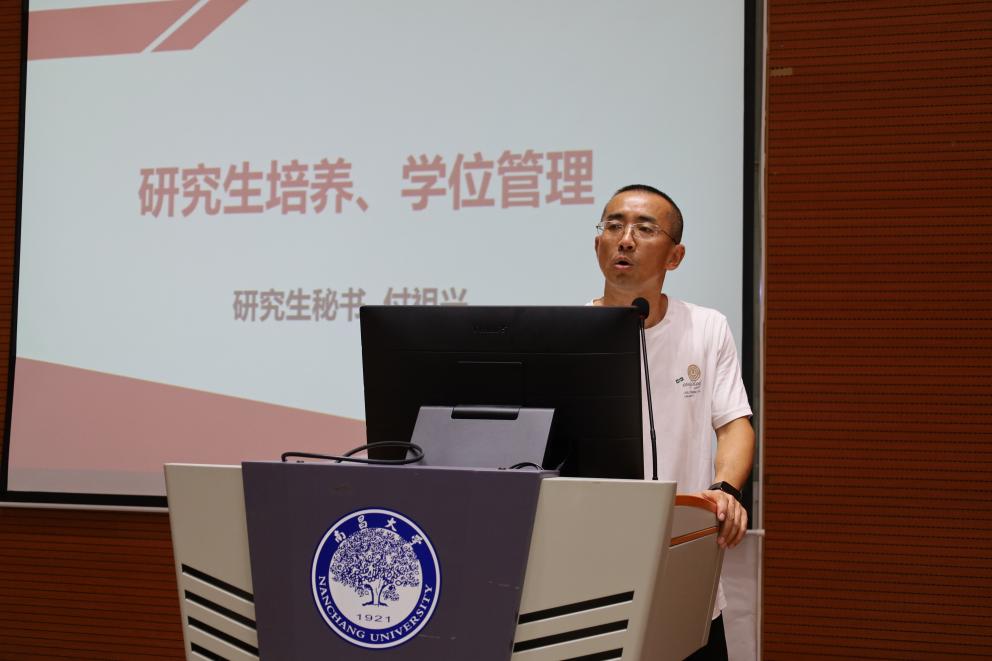 开学典礼结束后,学院同步开展“开学第一课”入学教育。党委委员陈金龙教授主讲爱国主义与社会主义专题教育,激励新生坚定理想信念、矢志科研报国。研究生秘书付祖兴和辅导员王丽燕分别就培养流程、学位标准、奖助政策、校园安全及职业规划等进行系统解读。实验室安全员付静谊开展实验室安全专题讲座,专职辅导员谢晨彬组织主题班会,带领新生学习《南昌大学研究生手册》,强化安全意识,并推进学生干部纳新工作,全方位助力新生融入校园生活。