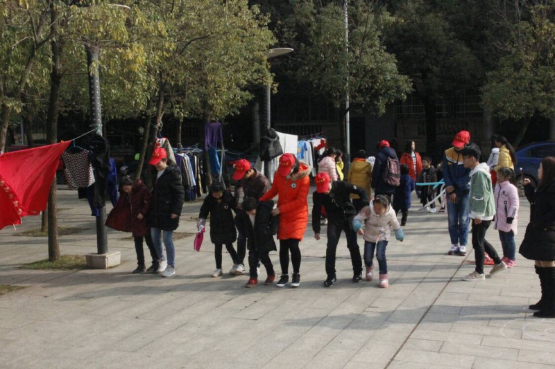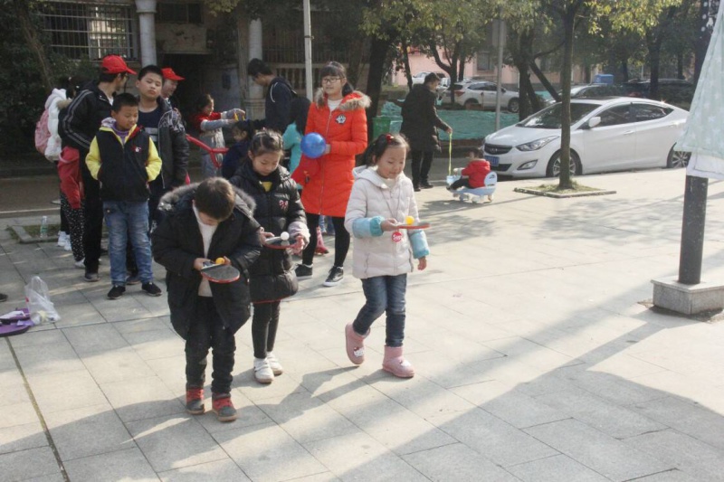 下午二时三十分许,志愿者将小朋友们都带到现场。开始时,小朋友们尚有些羞涩,但在志愿者们的耐心诱导下,大家终于一改之前的害羞,开始变得跃跃欲试起来。本次活动准备的游戏精彩纷呈,“乒乓球传递”游戏是要让小朋友们用球拍托着乒乓球前进,以速度之快慢一较高下。小朋友们在比赛中,有如八仙过海,各显神通;有人稳步前行,有人艰难行进,令人忍俊不禁。“地面打靶”“套圈”则是非常考验身体协调性和技巧的游戏。“地面打靶”是志愿者们在地面上画上靶子,小朋友们向它投掷纸盒,按投中的区域赠送奖品。而“套圈”则是将一目标物放置于地,让小朋友用纸环往目标物扔,若套中则获奖。两处游戏处,均被人群围得严严实实,不时传来阵阵叫好声,其乐融融。“结对而行”游戏则是考验志愿者与小朋友们的默契了。志愿者与小朋友们把一条腿绑在一起,然后多组竞速。在“一,二,一,二...”的号子声中,选手们通力合作,奋力前行。除此之外,还有“背对背夹气球”,其规则是小朋友们两人一组,背对背,手臂缠着手臂,用背部夹着气球侧行,先至终点者胜。这个游戏是锻炼孩子们的合作意识,培养其为他人考虑的善心。“投壶”的规则则是以个人为单位投木棒,投时,高度在肚脐以上,入壶即可获得奖励。这个游戏对于孩子们的耐心有着较高的要求。