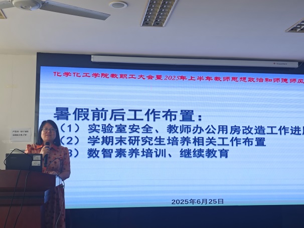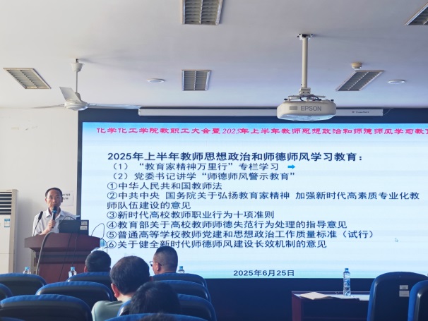 2025年6月25日下午,我院在理生楼A302-1报告厅召开教职工大会暨2025年上半年教师思想政治和师德师风学习教育专题会议。学院领导班子及全体教职工参会,会议由行政副院长王玉林主持。