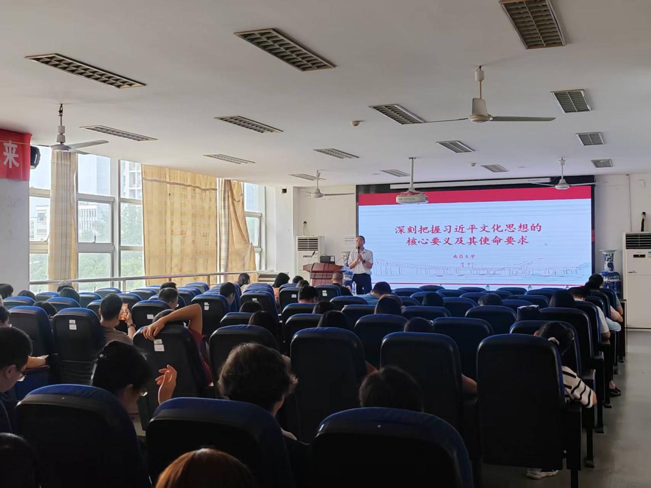 院党委书记戴超首先作《深刻把握习近平文化思想的核心要义及其使命要求》专题宣讲,结合当前教育形势与学院实际,系统阐释了习近平文化思想的丰富内涵与实践要求。随后,他传达了《深入贯彻中央八项规定精神学习教育工作提示》文件精神,并重点部署2025年上半年教师思想政治和师德师风学习教育工作。活动中,全体教职工集中观看了师德警示教育学习视频,通过典型案例强化底线意识;同步开展“教育家精神万里行”专栏学习,深入学习优秀教育工作者的先进事迹;戴超还以“师德师风警示教育”为主题开展讲学,带领教职工逐条学习《中华人民共和国教师法》等系列文件,强调师德师风是教师职业的“生命线”,要求全体教职工严守职业规范,增强责任感、使命感与荣誉感。