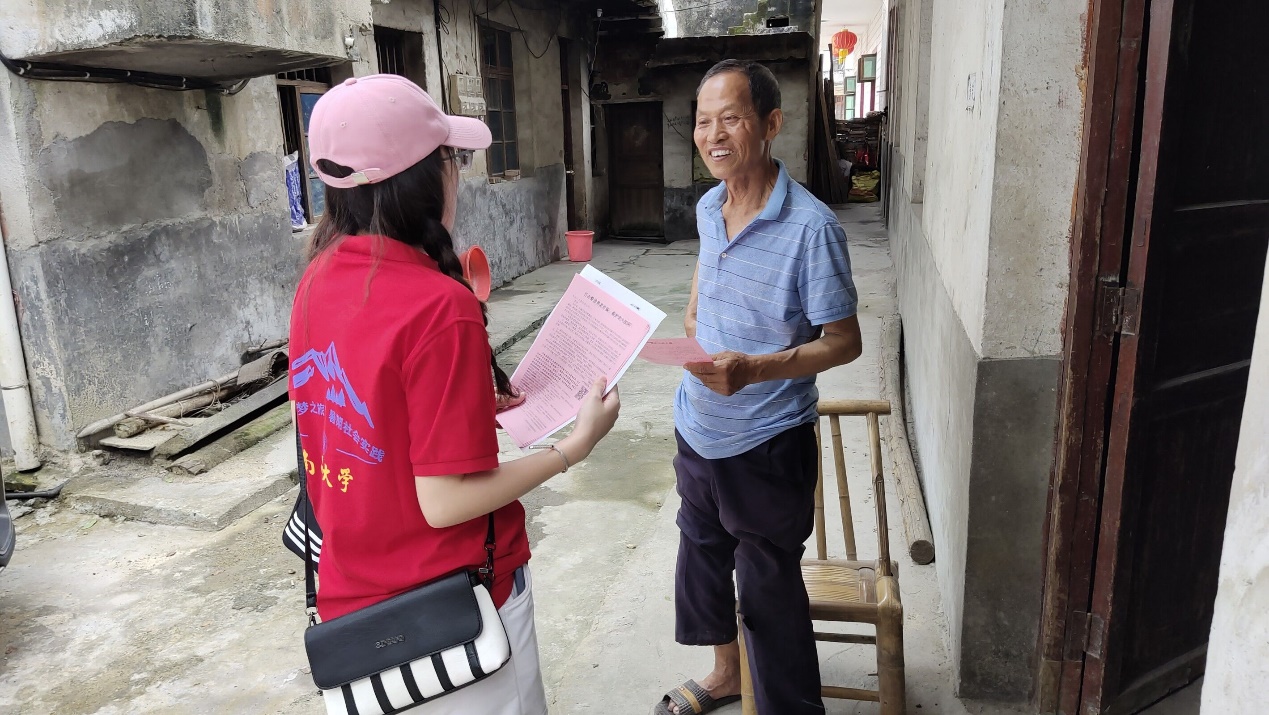 上午九点,实践队员们在村干部吴宇红的带领下走进横山村,向当地老年人宣传防诈骗知识,同学们走村入户,将防诈骗宣传单送到老人的手中,一字一句向他们讲解当前养老诈骗的形势,叮嘱他们不要轻信陌生人的电话和短信,不要贪图一时的小便宜,而给犯罪分子可乘之机。